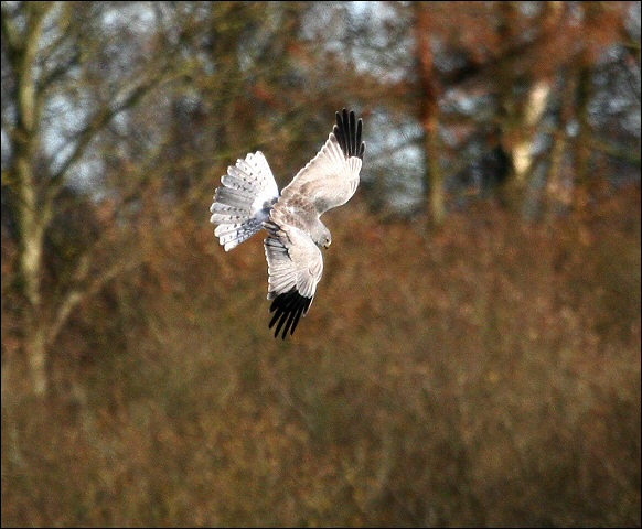 Beskrivelse: Hen over mosen fløj han, som andre kærhøge, lavt over vegetationen, da han pludselig som i kådhed slog en volte i luften. Kort forinden var en hun fløjet forbi ad samme rute.