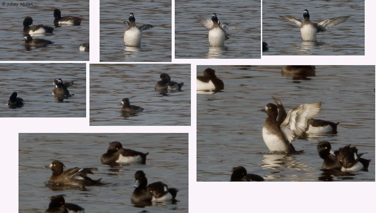 Beskrivelse: Jeg tror ikke, at det er lykkedes at finde "Rasmus fugl". Da de her vel er troldænder. De fem første billeder er den samme fugl, og det mener jeg også, at den 6. er. De 2 sidste er en anden fugl.