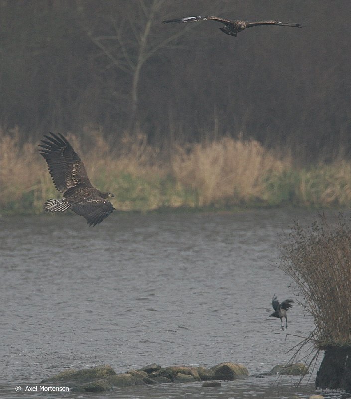 Beskrivelse: Et par havørne og en kongeørn havde nogle kontroverser over Næsbyholmsøen.