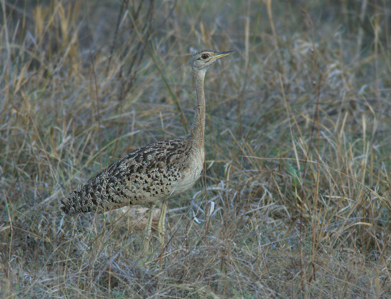 Beskrivelse: female Kun hannen er sortbuget. Andet navn: Black-bellied Korhaan Iso 1250 i tusmørket