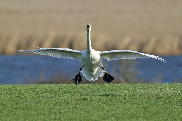 Ingen tvivl om, at fødderne også tjener et aerodynamisk formål, når så tung en fugl lægger an til landing. Halen og bakanten af vingerne er også vredet nedad, for på samme tid at opbremse farten og bevare evnen til at svæve så langsomt som muligt i landingsøjeblikket.