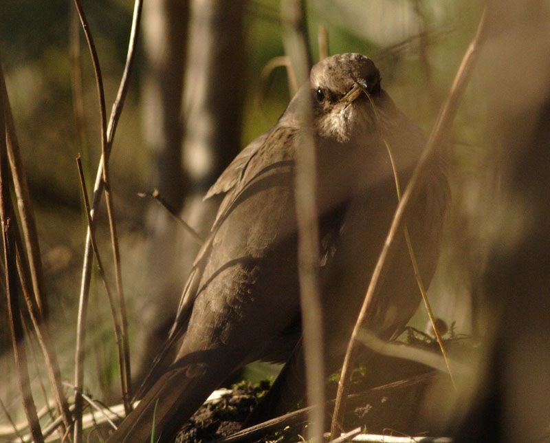 Beskrivelse: Fundet af Bo Svensmark. Ringede til mig mens jeg var i Gilleleje. Han mente at det var en Sorstrubet Drossel, men ville være helt sikker. I begyndelsen gemte den sig i bunden af noget buskads langs jernbanen 200 m syd for Møllevej i Nivå.
