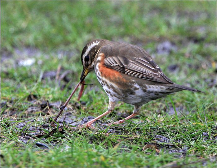 Beskrivelse: Utroligt så let og så hurtigt fuglene finder sig orm under græsset - og utroligt så hurtigt sådan en orm er slugt.