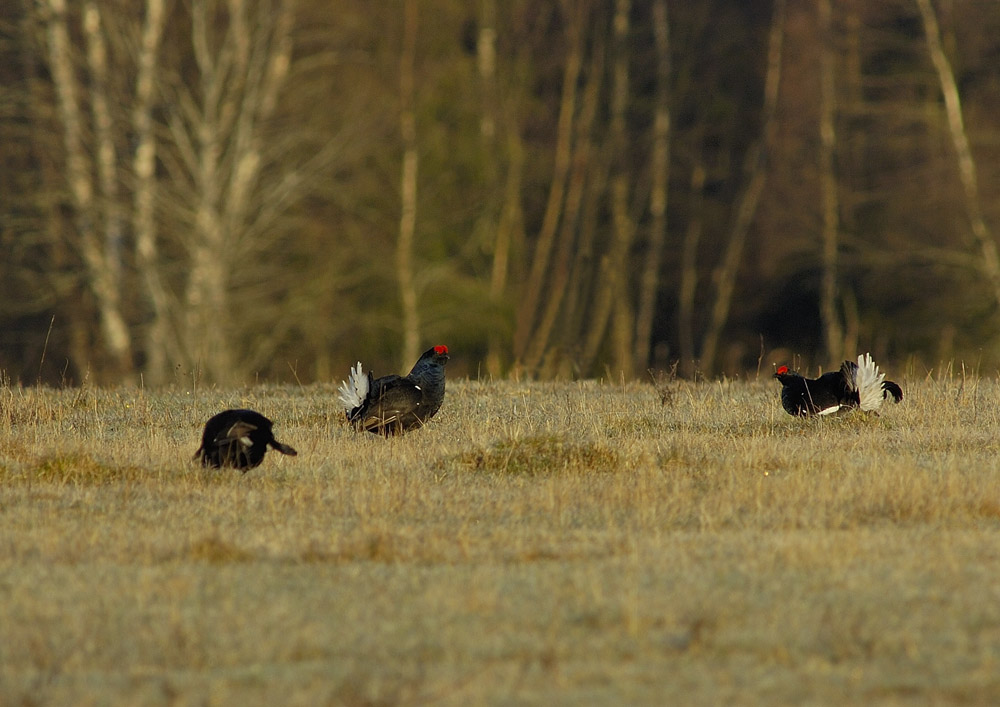 Jo, urfuglespillet i sig selv er smukt. En del af lydkulissen denne dag var et antal traner samt nogle råbukke i skoven lige bag spillepladsen.