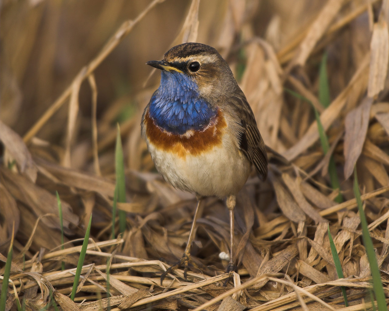 Jeg har igennem mange år i det østlige Jotunheimen i Norge, ofte set Blåhalse der ikke har nogen Rødbrun "stjerne", desuden kan striberne under det blå variere meget (i ovennævnte område), bl.a. kan der mangle en lys, en sort eller Rødbrun stribe, i nogle tilfælde mangler der 2 striber. Nogle englænder har i samme område lavet en undersøgelse af Blåhalse hvor det viste sig at hunner kan være næsten lige så kraftig farvet/tegnet som hanner, desuden kan hunner også finde på at synge - der er mange spændende "hemmeligheder" derude, fint billede - hilsen Henrik
