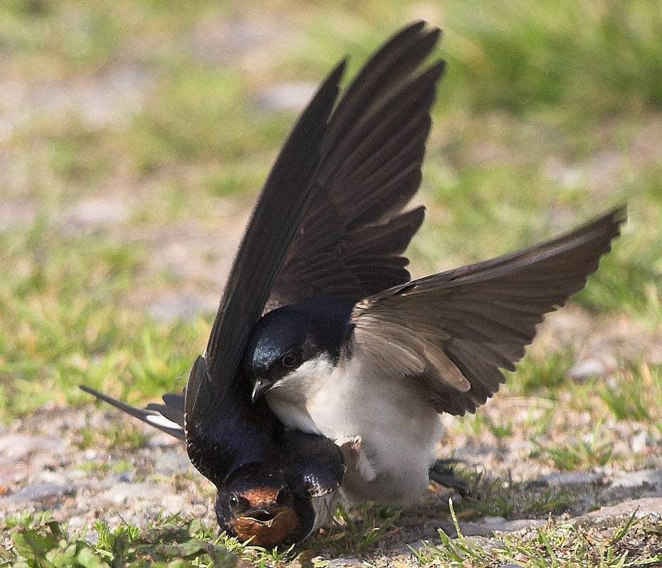 Beskrivelse: Svalerne var meget oppe på dupperne for at få gang i damerne, denne Bysvale hoppede på nakken af næsten alt der rørte sig. Både by og Digesvale hunnerne lagde sig fladt ned på jorden for at vente på at der kom en han.