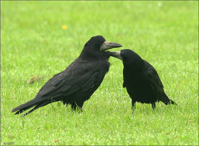 Fuglen til højre har i de 10 minutter, jeg kikkede på, været travlt beskæftiget med at udsøge sig godbidder under venstrefuglens sorte fjerdragt, hvilket denne tilsyneladende fandt stort behag i.