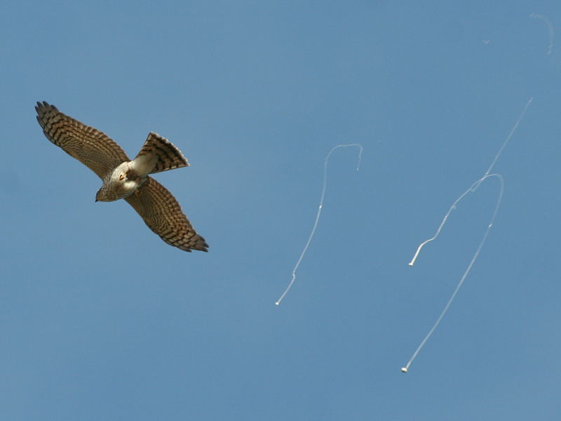 Beskrivelse: Netop ankommet til Danmark havde denne Spurvehøg noget, den skulle af med.