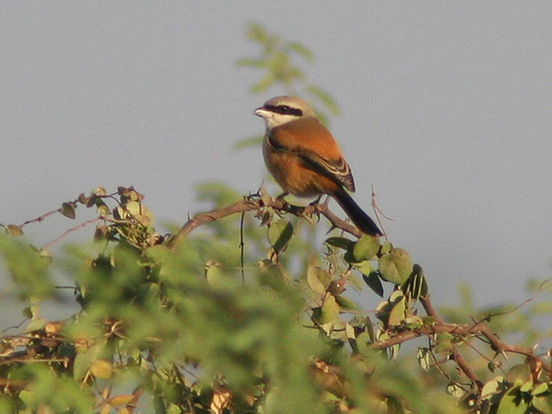 Beskrivelse: Langhalet Tornskade findes i flere former. Den vestligste form, erythronotus, der yngler vestpå til omkring Aral-søen, er trækfugl, og den, der er truffet i WP. Det er den, der er aktuel m.h.t. det danske førstefund.