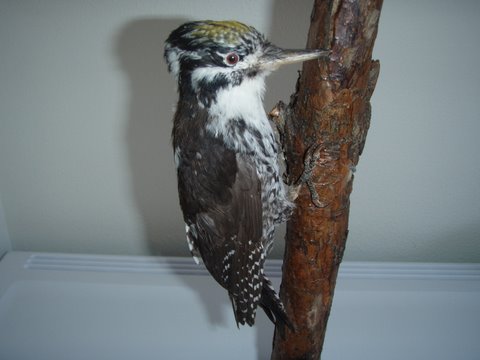 Ifølge DOFT 58: 112 (skrevet af Poul Hald Mortensen) har fisker Martin Simonsen i sin fuglesamling (altså i 1964) en Tretået Spætte han, der er skudt i hans have i Hamborg (landsby på nordsiden af holmen)i april 1959. Er det denne fugl? Og hvad er så den korrekte dato?