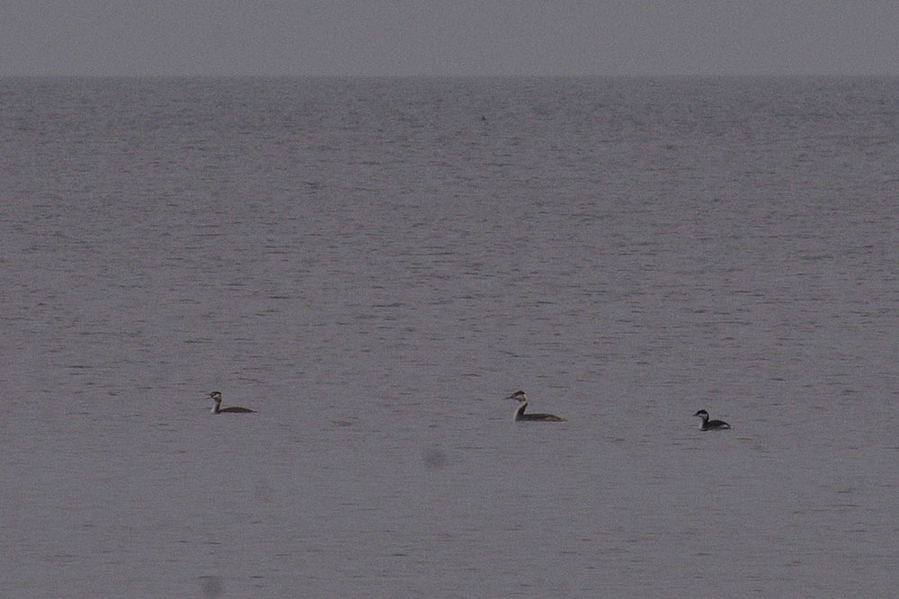 Grunden til at den er mørk og beigefarvet på halsen er fordi den stadig har lidt rester af sommerdragten. Man kan faktisk også se at den har en distinkt sort tøjle som en gråstrubet ikke har. Grunden til at den virker mindre er fordi den ligger anderledes i vandet.