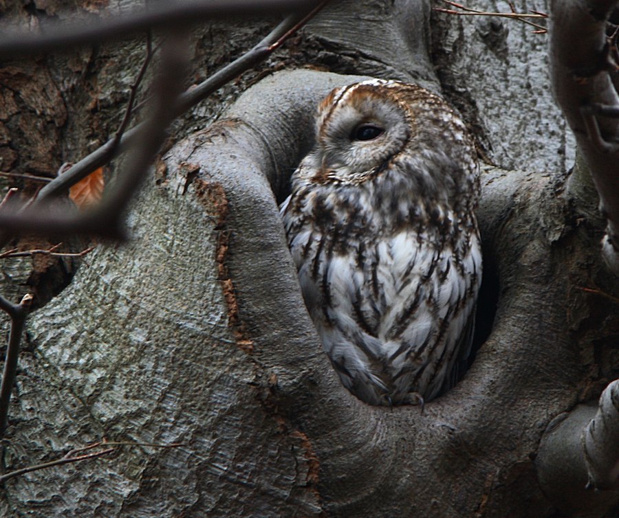 Beskrivelse: Uglen var lidt forstyrret af krager og skader.