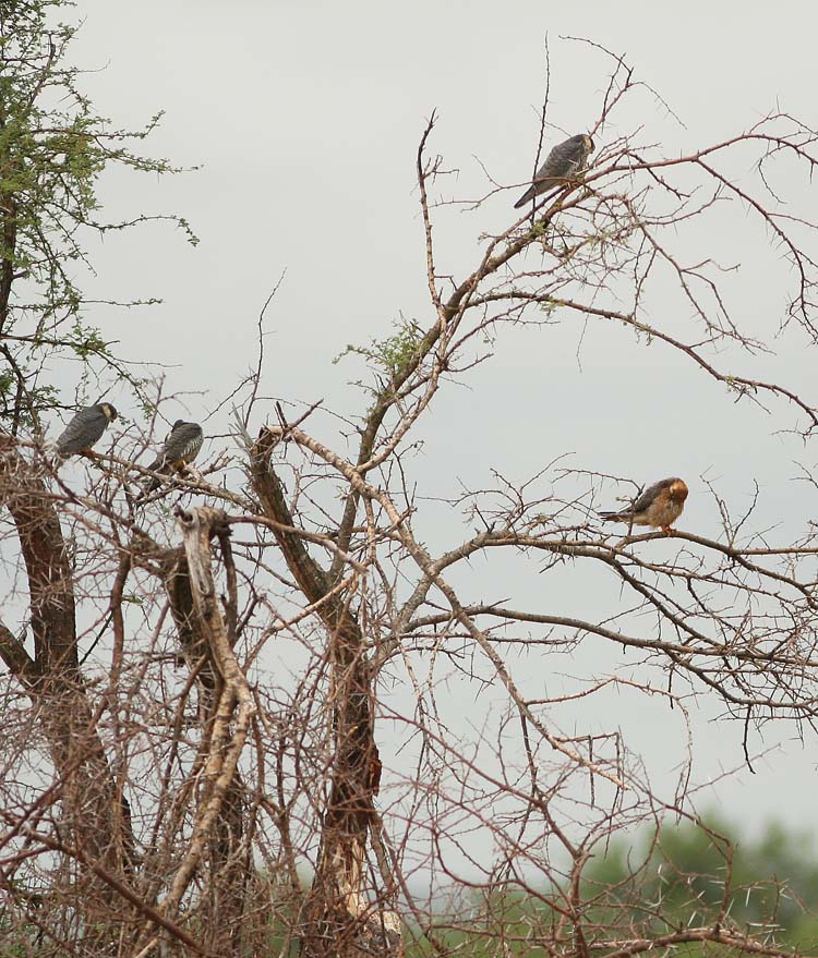 Fuglen nederst til højre ser ud til at udvise orange indslag på undersiden og issen samt at have en lys nakke, hvilket synes at indikere en hun af den 'almindelige' Aftenfalk. Er der mon flere billeder af denne fugl? Aftenfalk kan fint træffes i Krueger NP - og i givet fald gemt i flokke af den hyppigere Amurfalk (der gennemfører et af fugleverdenens mest ektreme langdistancetræk - fra ynglepladserne i f.eks. Kina til vinterophold i det sydlige Afrika - med indlagt non-stop flyvning over det Indiske Ocean).