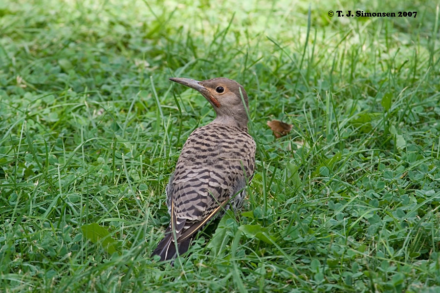 Beskrivelse: De to underarter af Guldspætte, den vestlige Red-shafted Flicker og den østlige Yellow-shafted Flicker, overlapper i det sydøstlige Alberta, hvor de ofte danner par med hinanden. Resultatet af sådanne "blandede ægteskaber" er den på billedet viste "Orange-shafted Flicker, der kan være endnu mere orange.