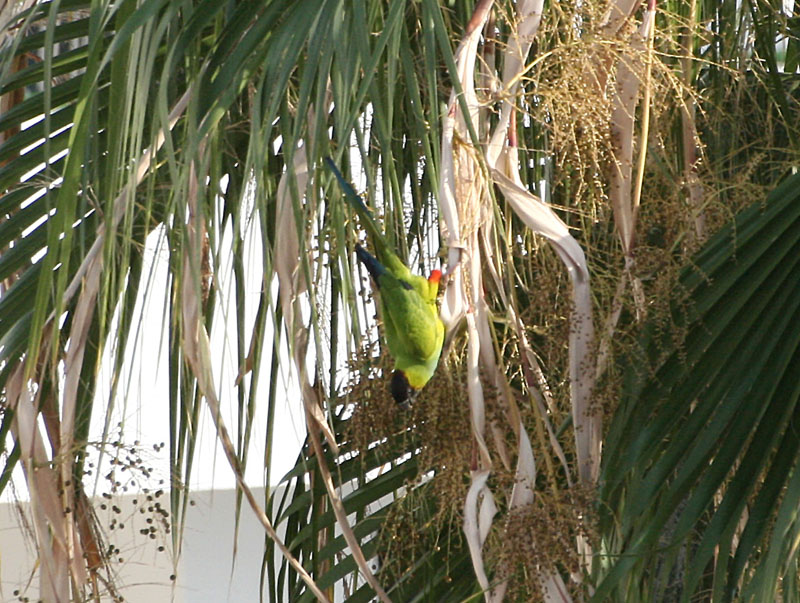 Beskrivelse: Sad i Palmerne over Svømmepoolen og spiste af de modne frø/frugter.