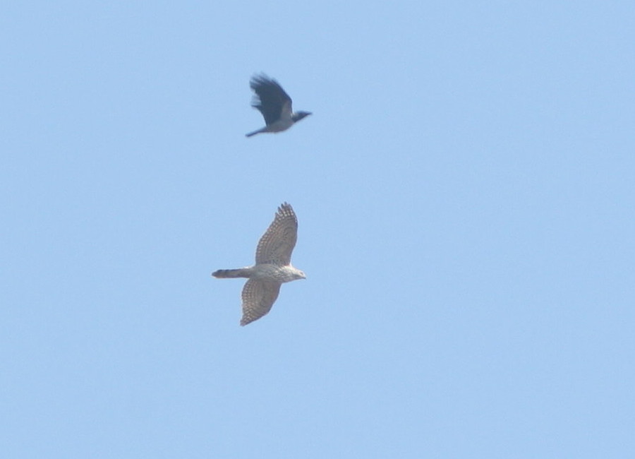Beskrivelse: Denne bamse af en Duehøg rastede kortvarigt over Aborrebjerget. Ud over at arten efter sigende er et lokalt hit på den egn, synes jeg også den ser temmeligt spændende ud. Den er både meget stor og meget lys - kendetegn der peger i retning af den østlige race Accipiter gentilis butoides..?