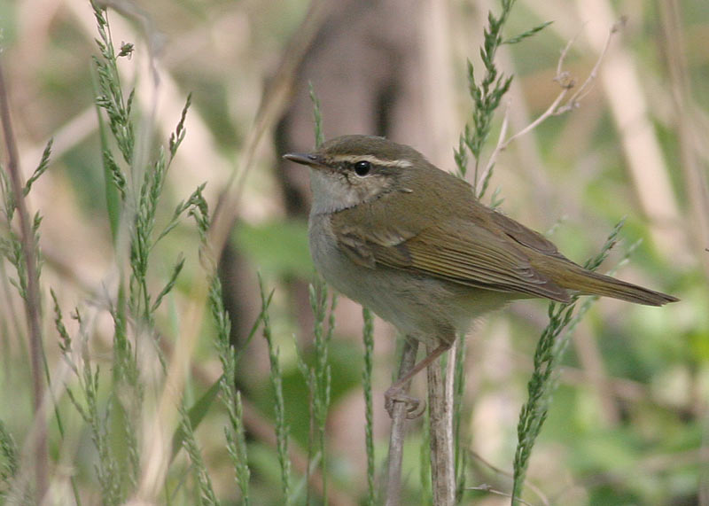 Beskrivelse: Denne meget østlige phylloscopus er ret hyppig på de østkinesiske træksted. Den er ret stor; især når man lige har boltret sig i de små "vingebånd", Hvidbrynet Løvsanger og Fuglekongesanger. Her ses det lange, hvidlige øjenbryn, de gråtonede issesider og den branze-tonede overside, der bliver lidt brunere mod overgump og hale. Vingebånd har den, men de er smalle, og ofte begrænset til et enkelt, dog med en vis variation. Benene er, som navnet antyder, lyse. Kaldet er et ret vidtlydende, entonet og metallisk "zee", der kan gentages i korte serier.