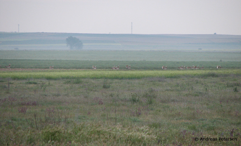 Beskrivelse: Morgenstemningsbillede fra stepperne omkring Villafafila i det nordvestlige Spanien. Fra et punkt kunne vi horisonten rundt se omkring 200 Stortrapper denne morgen. Det er mit indtryk at mange tager til steppeområderne i Belen for at se Stortrappe, men Villafafila kan klart anbefales hvad angår kvantitet.