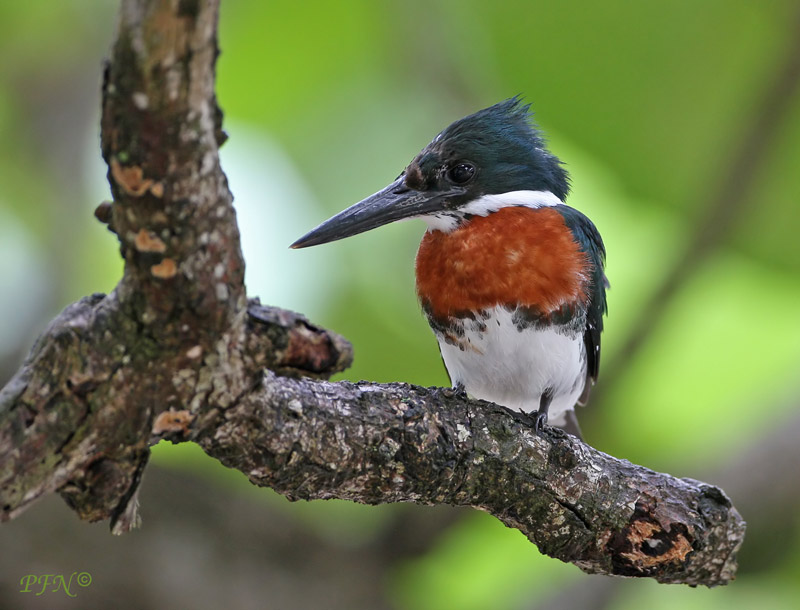 Beskrivelse: Formodentlig tale om underarten Chloroceryle americana croteta, der kendes på et lidt kraftigere næb en den kontinentale fugl.