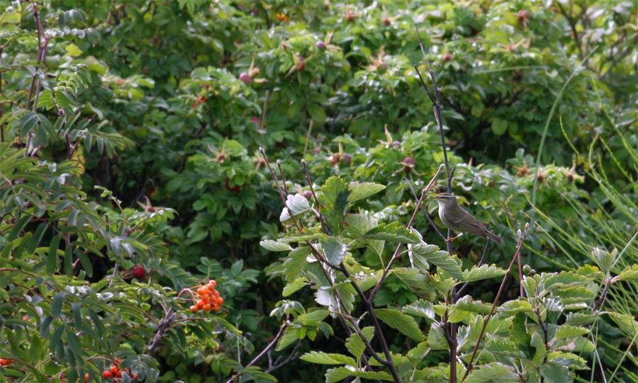 Beskrivelse: Fuglen fouragerede i haven nord for Blåvand Fuglestation og var meget aktiv efterhånden som den arbejdede sig mod fyrhaven