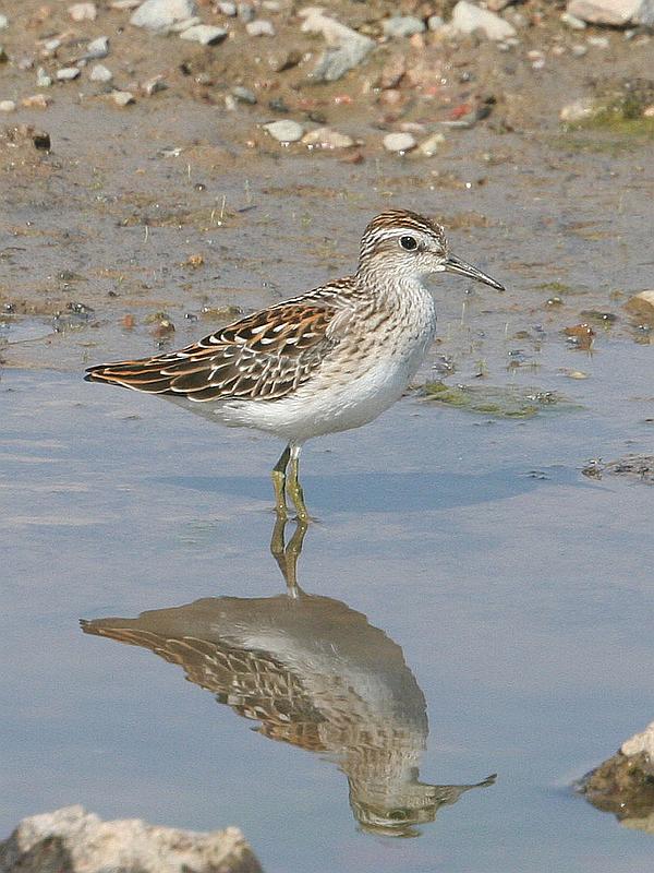 Beskrivelse: One out of 7 birds feeding in an almost dried-up river.