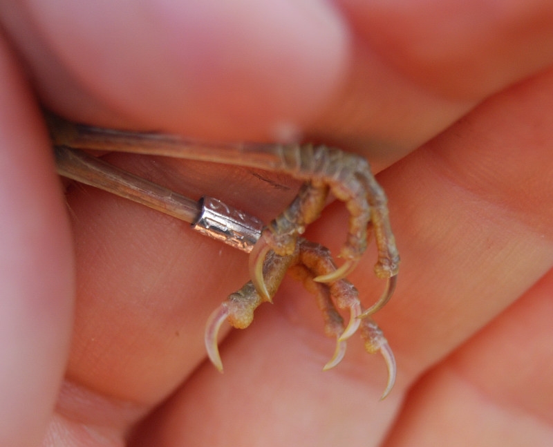 Beskrivelse: Sen Kærsanger. Bemærk de blege klør og svag kontrast til trædepuder i forhold til Rørsanger.