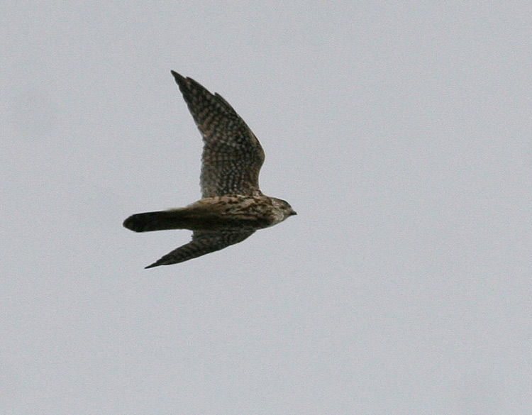Bemærk den i forhold til juvenile mere grovplettede underside (tendens til stribet mønster hos 1K), og i øvrigt Dværgfalkens meget mørke undervinge, især dannet af de mørke undervingedækfjer.