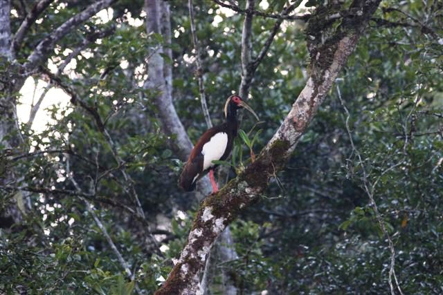 Beskrivelse: Den sjældne, endemiske Madagascar Crested Ibis optræder som regel i par i skovområder, hvor de fouragerer på fugtige steder i skovbunden, eller raster i store træer.