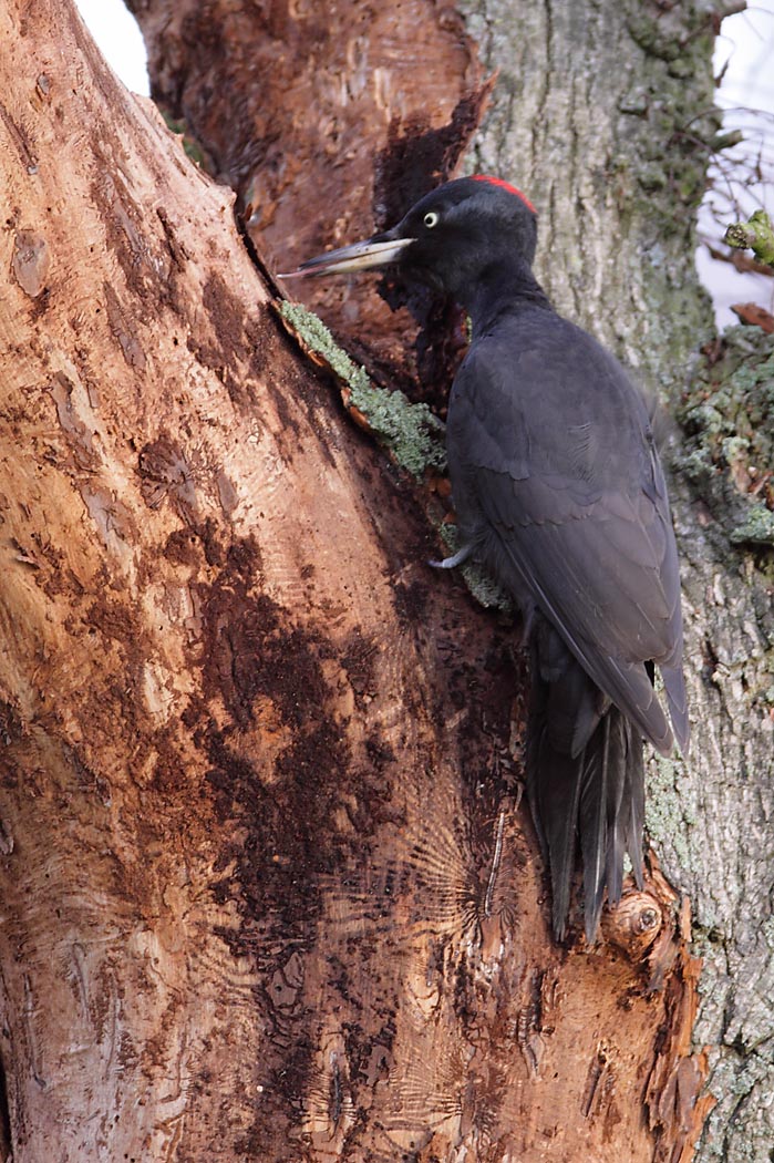 Beskrivelse: der var ikke meget løs bark tilbage, da sortspætten fløj videre.