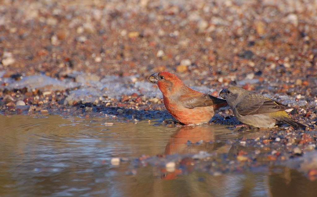 Beskrivelse: De store korsnæb ved Melby Overdrev er efterhånden gået hen og blevet en årlig begivenheden i Nordsjælland. Til stor glæde for de lokale og de tilrejsende.