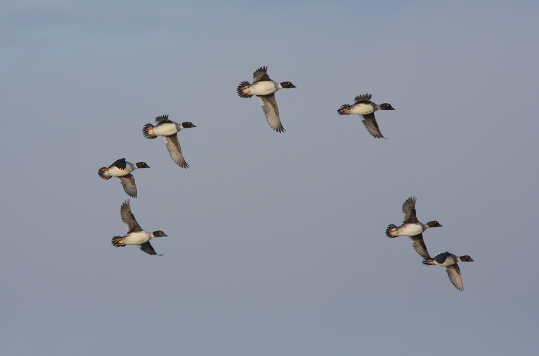 Beskrivelse: Man kan næsten hele tiden høre Hvinænder i luften på denne årstid.