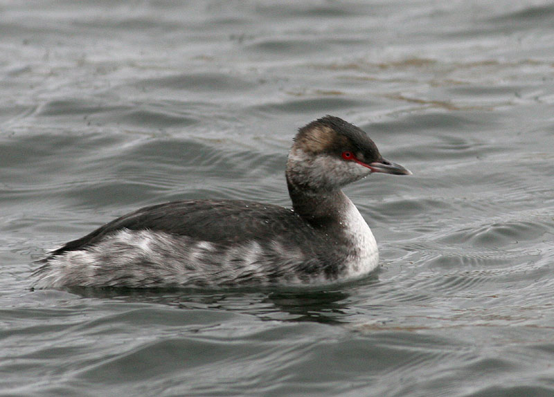 Beskrivelse: Adult i næsten vinterdragt, men med indslag af gultonede fjer bag øjet. Det er sjældent at Nordisk Lappedykker ses på så tæthold, at man let ser den lyse tøjleplet og den lyse næbspids.