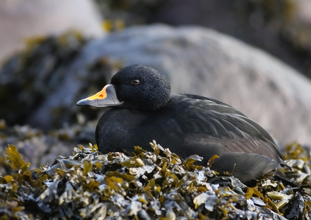 Normalt ville en sortand vel aldrig opholde sig på land på denne årstid. Og ligner det ikke en olie plet på brystet ?
