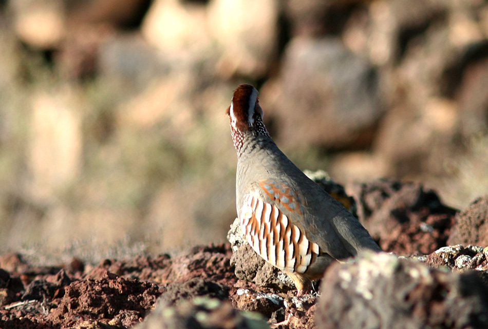 Beskrivelse: På vej ud til fyret på sydenden af Tenerife, dukkede der 2 Berberhøner/haner op ganske tæt på stien. Ellers et fuglefattigt område.