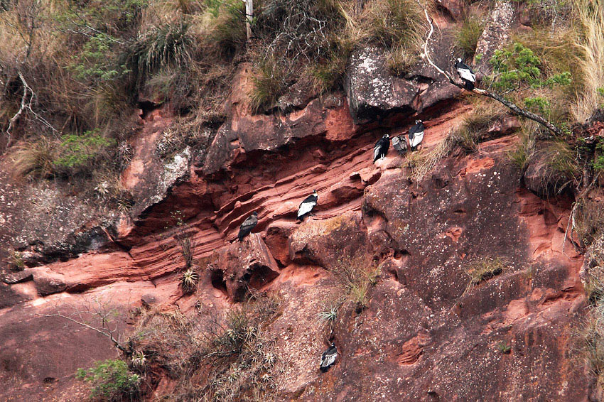 Beskrivelse: Huge roost of 26 Condors together with Black Vultures in a ravine.