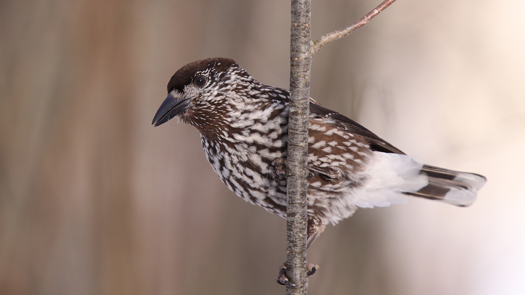 Nøddekrige (Nucifraga caryocatactes) Spotted Nutcracker -