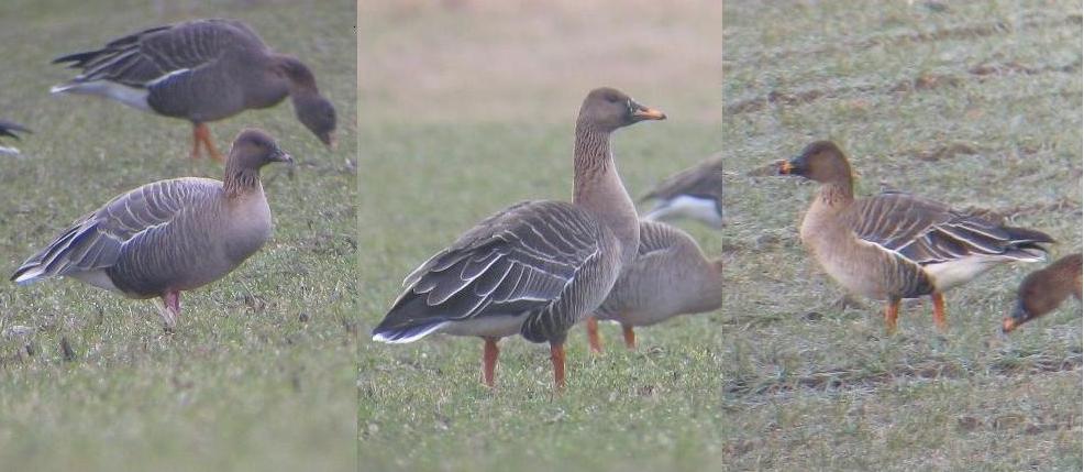 Beskrivelse: Tajgasædgås flankeret af kortnæbbet gås til venstre og tundrasædgås til højre. Udstyret er ikke til den fine kvalitet, men billedet viser meget godt hvor kompakte (og ens) de to "små" gæs kan se ud sammenlignet med "storebror".