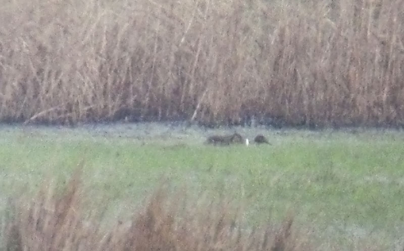 Beskrivelse: Billedet er taget på lang afstang i dårlig lys, men viser det for amerikansk krikand karekteristiske hvide sejl på brystet.