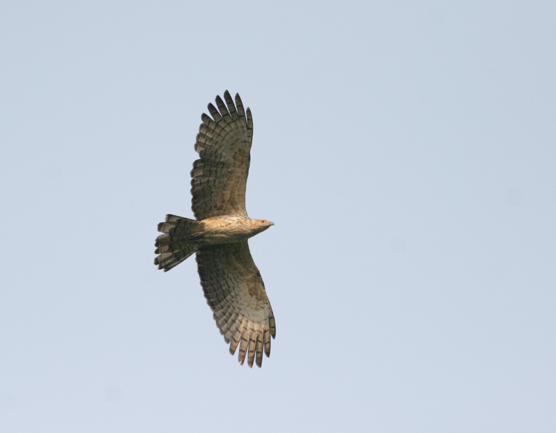 Beskrivelse: Denne ret store hvepsevåge har flere fælleskendetgn med de lokale mindre ørne. Som andre pernis er hovedet dog dueagtigt smalt, og halen ret smal med tydeligt runde hjørner. De arter, den kan forveksles med har bredere og rundere hoveder samt bredere hale med skarpt afskårne hjørner.