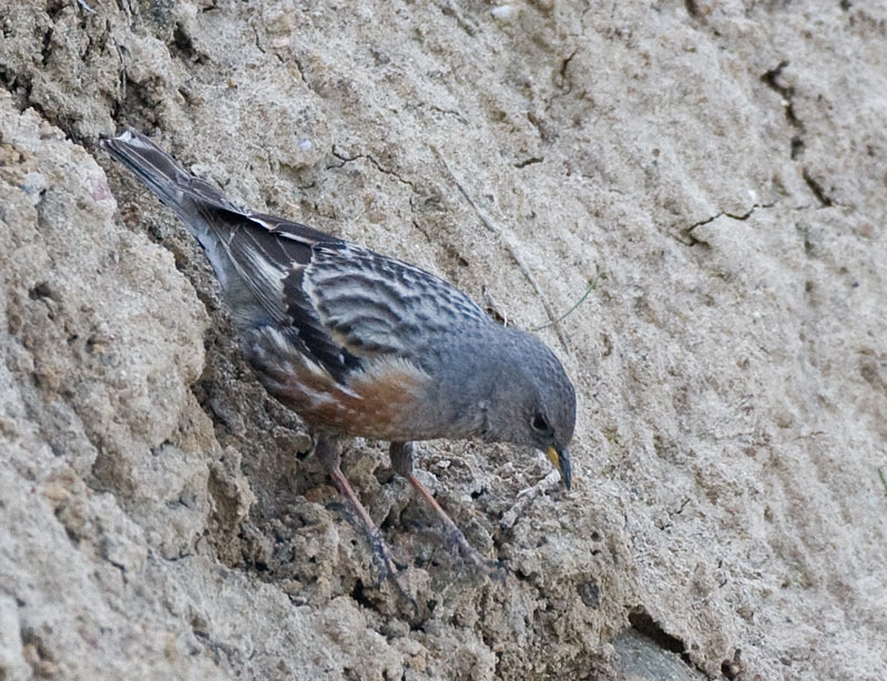 Et rigtig godt shot: Fuglen er fanget "på arbejde", som var det i Dolomitterne, og den fremtræder smukkere blå, rød og med gul næbplet end i mange fuglebøger.