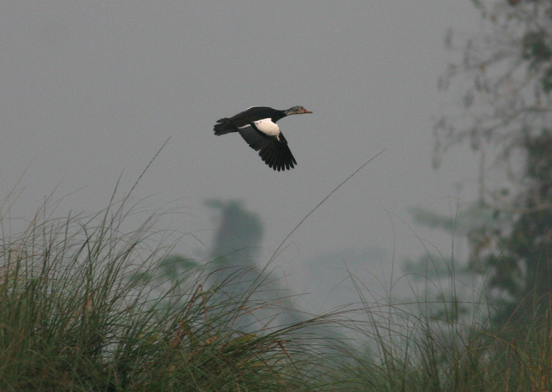 Beskrivelse: En af verdens sjældneste andefugle, der unægteligt ikke er blandt de skønneste. Da den til og med er nataktiv er den svær at få at se. Et ret sikkert sted er den fine lille park Nameri i Assam, der til og med er forsynet med en glimrende teltlodge, i hvis baghave den af mange så eftertragtede Spot-bellied Eagle Owl huserede i foråret 2009.