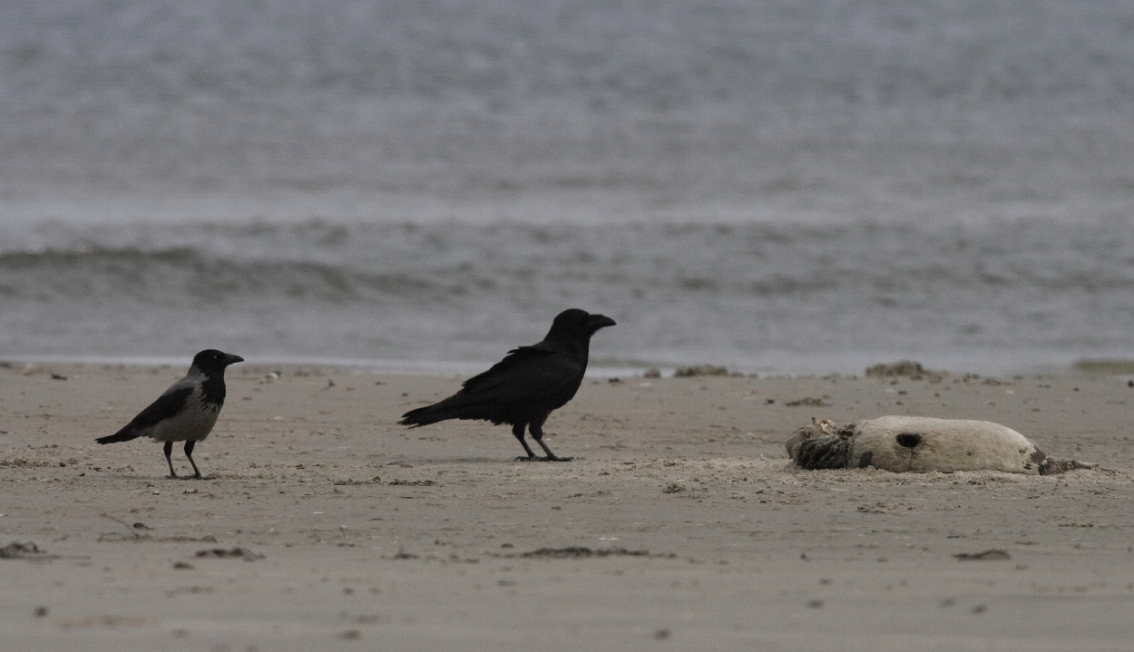 Titel: Ravn og gråkrage ved død sæl