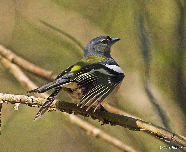 Beskrivelse: Denne bogfinke afviger i farven fra det normale ved at mangle meget af det rødbrune i fjerdragten. Faktisk ligner den den nordvestafrikanske underart africana. Den har opretholdt det samme territorium på Læsø både i 2007 og 2008. Tilsyneladende er den trukket væk om vinteren. Spændende at se, om den dukker op igen i 2009!