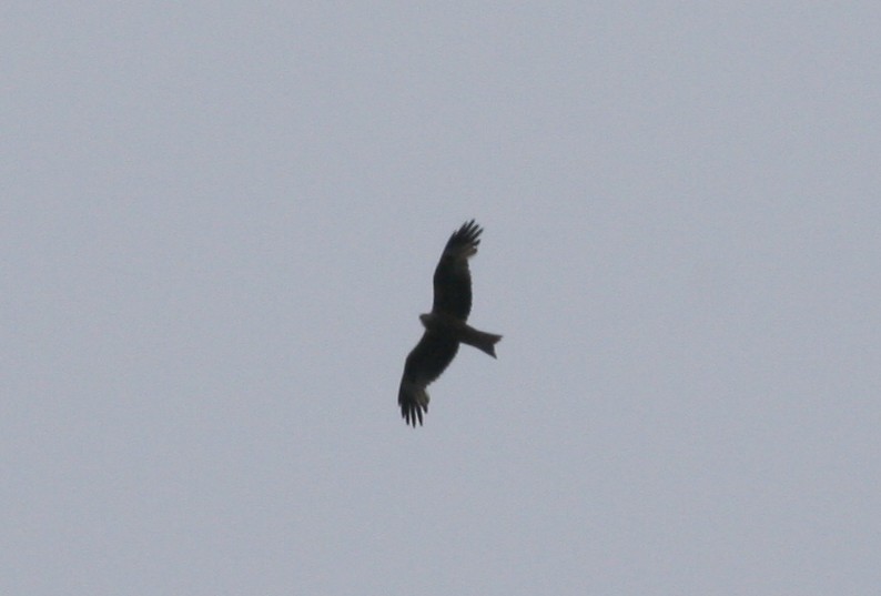 Beskrivelse: Sås trækkende ret hastigt mod syd, og det var kun muligt at se undersiden af fuglen. Lyset var ret dårligt og billedet ligeså, men i forhold til rød glente ses det, at denne fugl er mørkere, og har ikke så dybt kløftet hale. Hånden er relativt bredere med 6 synlige svingfjer.