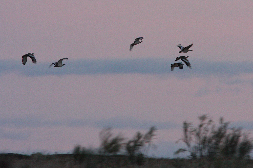 Beskrivelse: Optaget lige før solen titter op over horisonten. Den præcise lokalitet ligger vest for Trujillo ca. 2 km ud ad vej cc 57. Hvor vejen slår et kraftigt knæk til venstre er der gode chancer for Dværgtrappe og Sandhøns og, som det ses, Stortrappe.