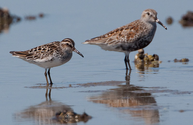 Fint foto og et godt eksempel på at det kan være "farligt" at sammenligne størrelse på fugle fotograferet med store telelinser - for nok er en kærløber mindre end alm. ryle, men dette er optisk bedrag!