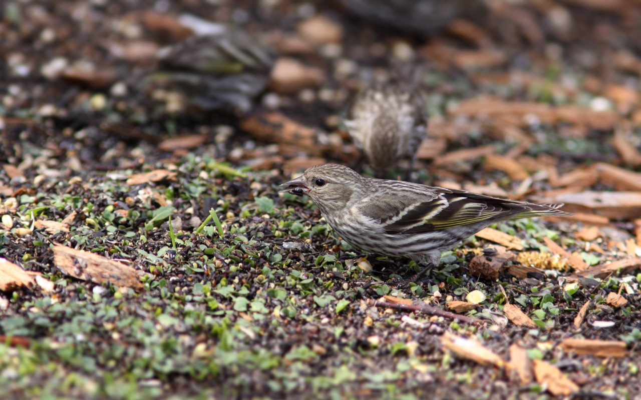 Beskrivelse: Ved de mange feeders omkring Algonquin Lakeside Inn var der konstant 5-15 Pine Siskins, 2-6 Purple Finch, 2-8 American Goldfinch og Ruby-throated Hummingbirds plus flere andre mere fåtallige arter som kom forbi fra tid til anden. Bl.a. blev Evening Grosbeak også set hver dag, men undgik desværre vores turliste fuldstændig...