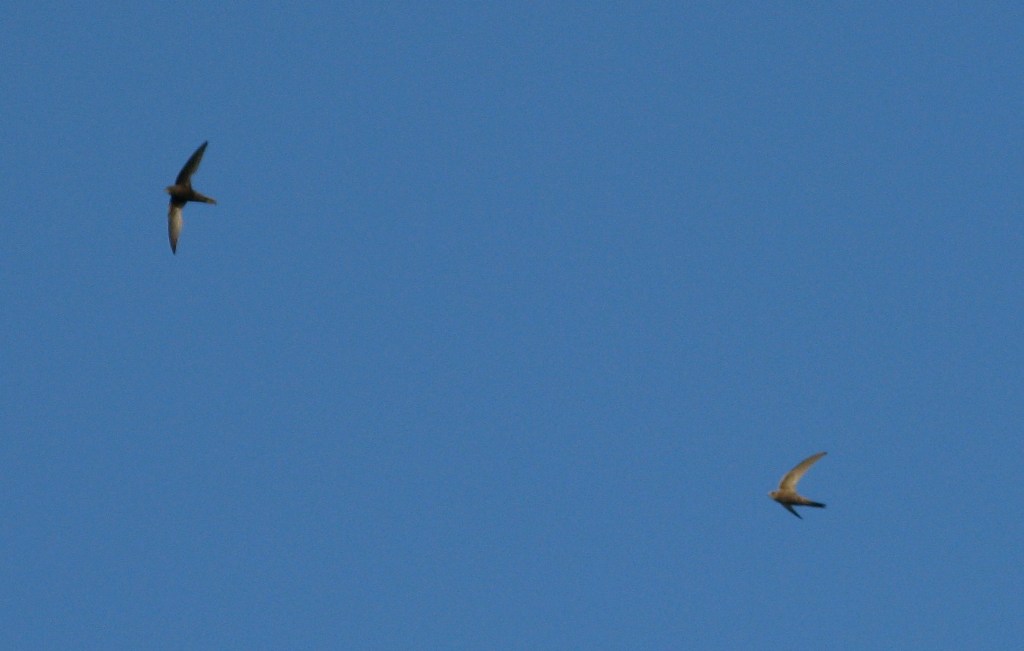 Beskrivelse: I virkelighedens verden synes jeg ofte, det er svært at vurdere farver, strubeplettens størrels osv., når man skal pille gråsejlerne ud. Billedet er uploadet, fordi det viser mur- og gråsejler til sammenligning i det samme lys. Og så er der jo ikke længere så meget at rafle om. Et godt nok ikke særlig holdbart bestemmelseskriterium kunne være: Hvis man er i tvivl, - så er det en mursejler!