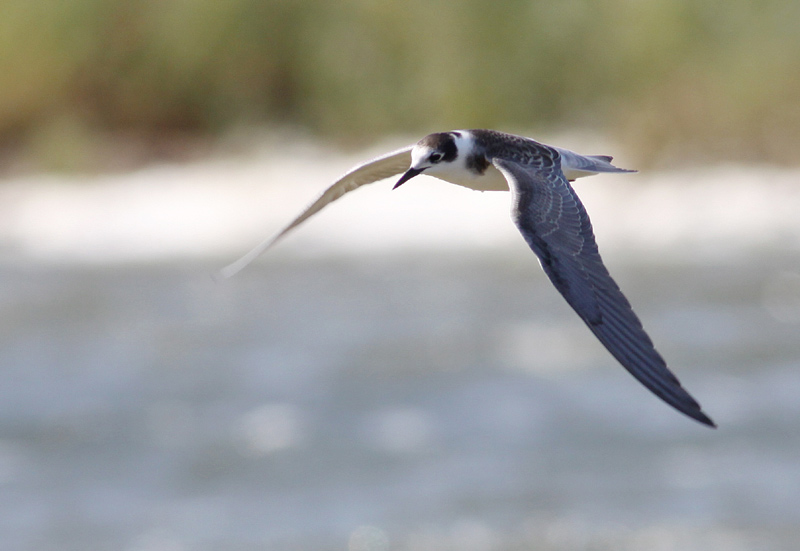 Mange Sortterner har mørke brune og mere ensartede overvinger. Specielt i "skævt" lys kan man opfatte ryggen som ret afstikkende mørk imod lysere vinger, men aldrig i klasse med den direkte slående sortbrune "sadel" imod lysere vinger og hvid overgump som hos ung Hvidvinget Terne. Den mørke halssideplet er her tydelig, men undertiden er den reduceret til enkelte mørke fjer, og kan næsten forsvinde på afstand, hvorfor Hvidvinget Terne og Hvidskægget Terne kan mistænkes.