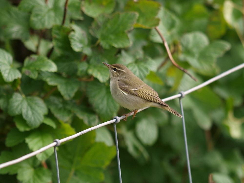 Jeg havde obset ca. 5 timer på øen, da jeg fandt nordsangeren. Faktisk tjekkede jeg den østligste have ca. hver ½ time, idet der kom nye fugle ind fra havet. Flere af dem var totalt ramponerede og ubestemmelige, sandsynligvis pga. en stomlagtryk over Skotland. Nå, men på måske 100 m afstand ser jeg denne phyl med tydeligt dobbelt vingebånd og opstoppernæb. Jeg ser den dårligt og på lang afstand, men får lidt billeder, før den synker i jorden. Via sms og telefon får jeg at vide, at jeg ikke må finde bryn 25. aug. så det er helt sikkert noget sjovt. Og desuden var tertial-spidserne ikke hvide, så det var ikke et bryn. Jeg leder så efter den et godt stykke tid. Dagen havde vist, at phyllerne havde en tendens til at følge haverne nordpå og havne i de to nordligste haver. Jeg tjekkede dem, og mens jeg gjorde det, genfandt jeg nordsangeren i en lille kartoffelmark ved siden af haverne. Den var så venlig at stille sig til udstilling i et hegn et par sekunder, hvor den fint kunne nydes og fotograferes.